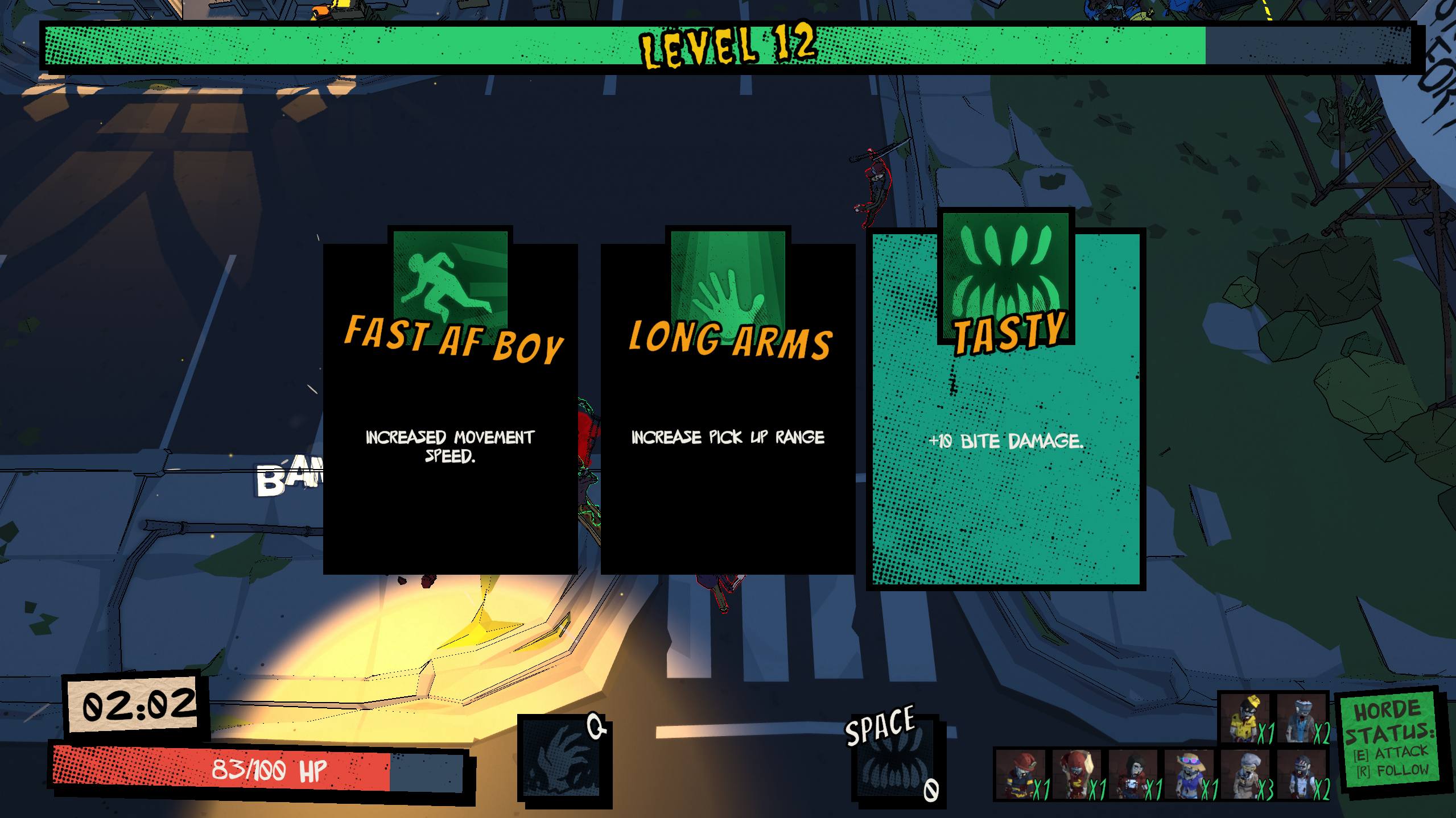 - When you leveled up, you get to choose one of 3 random perks. Also you get ability to bite and infect a human.